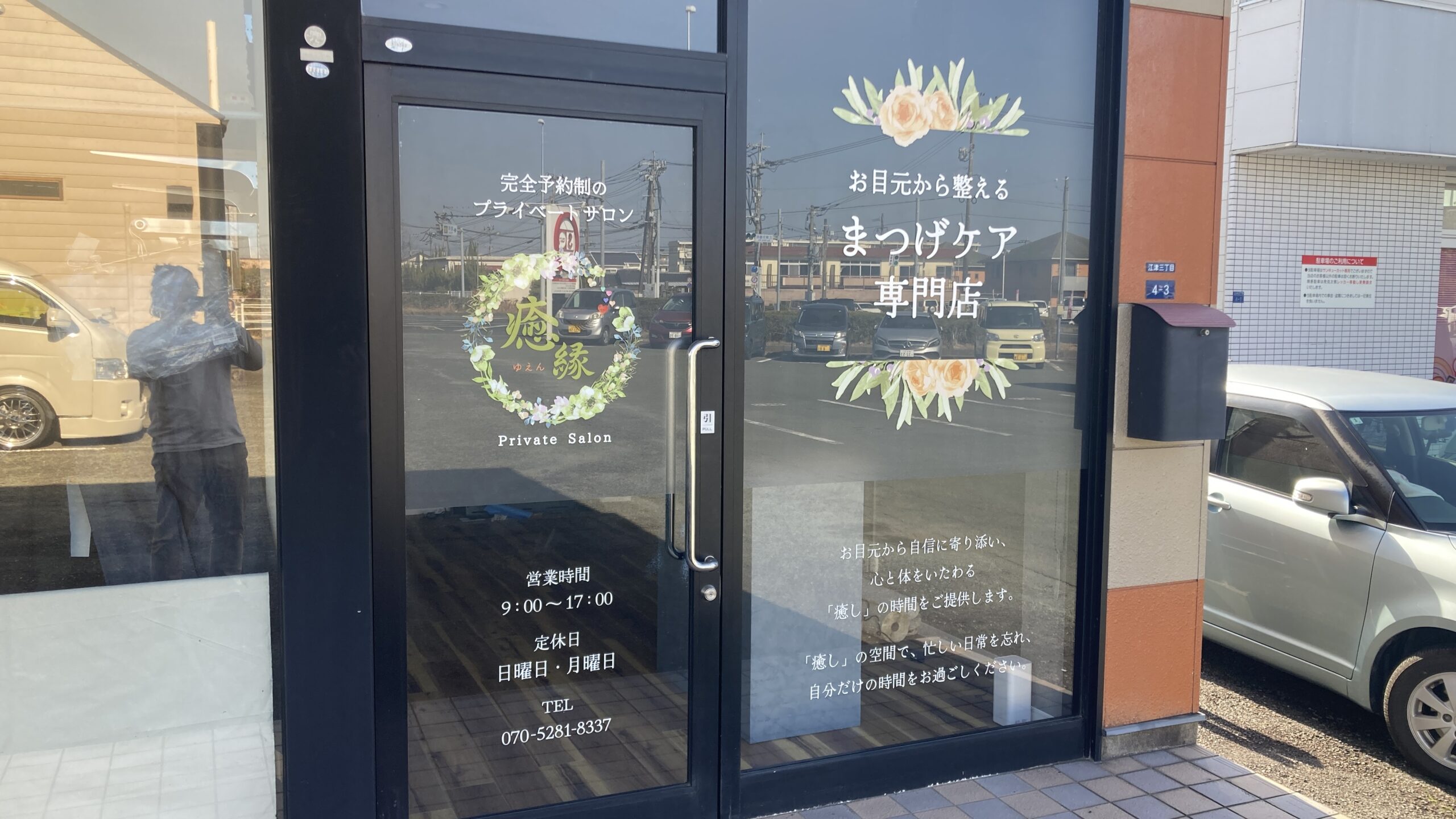 まつ毛ケア専門店 癒縁さま_ウインドウサイン、壁面サイン製作
