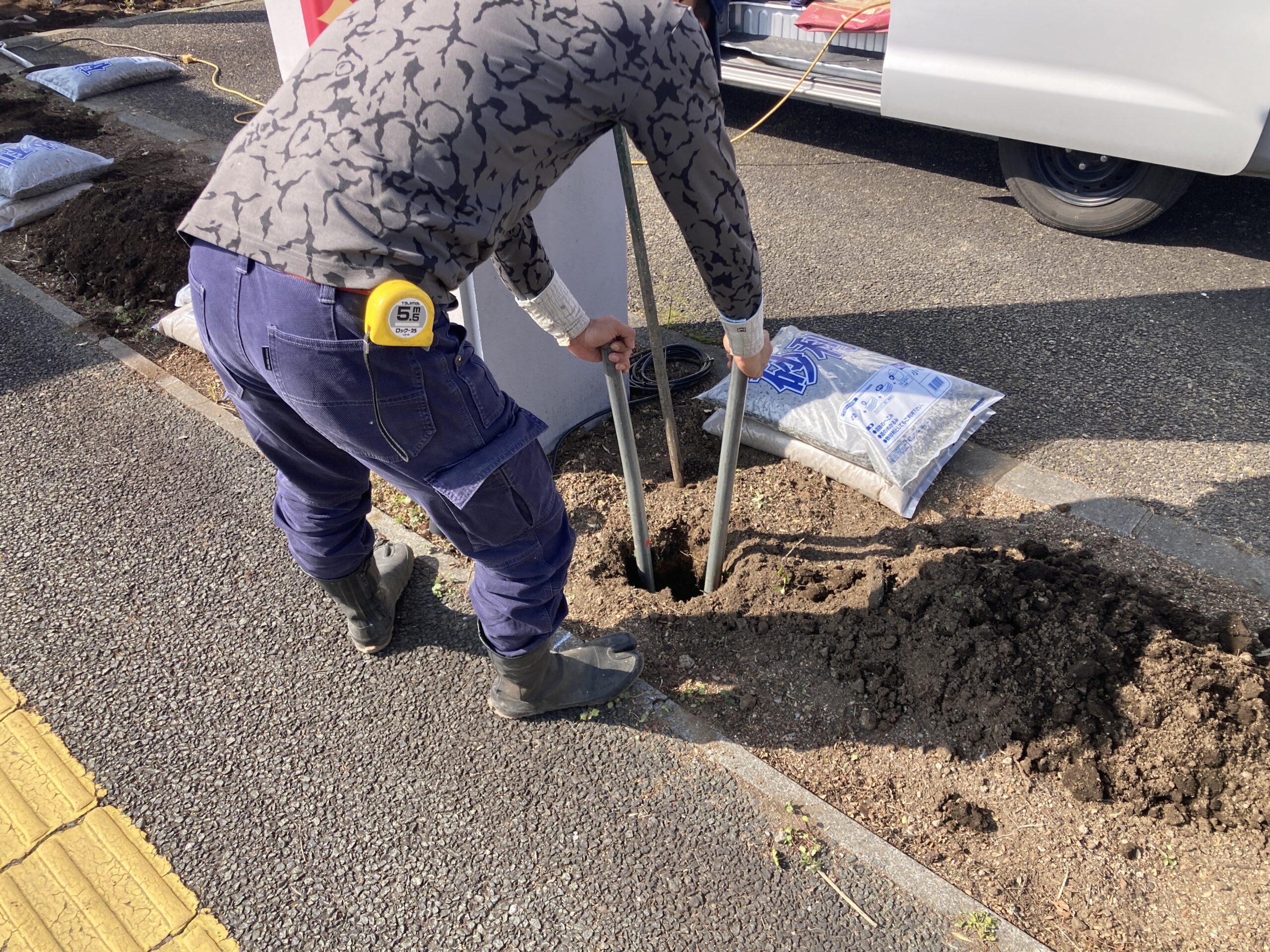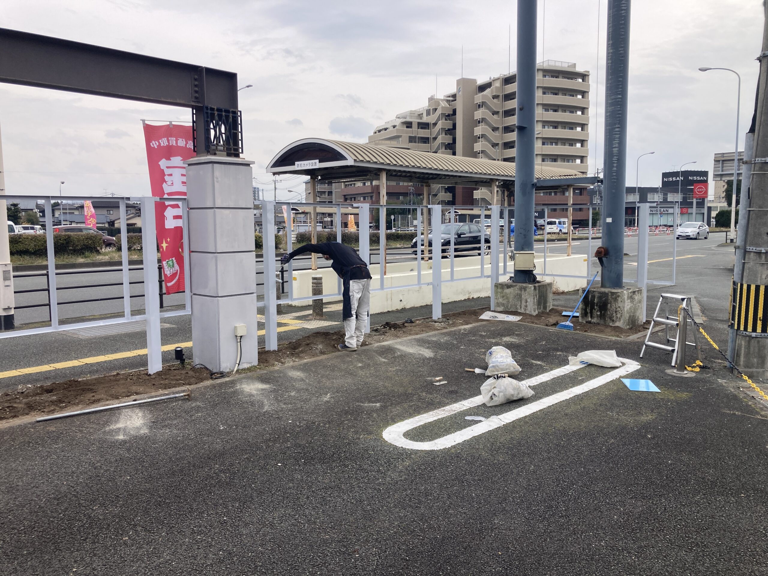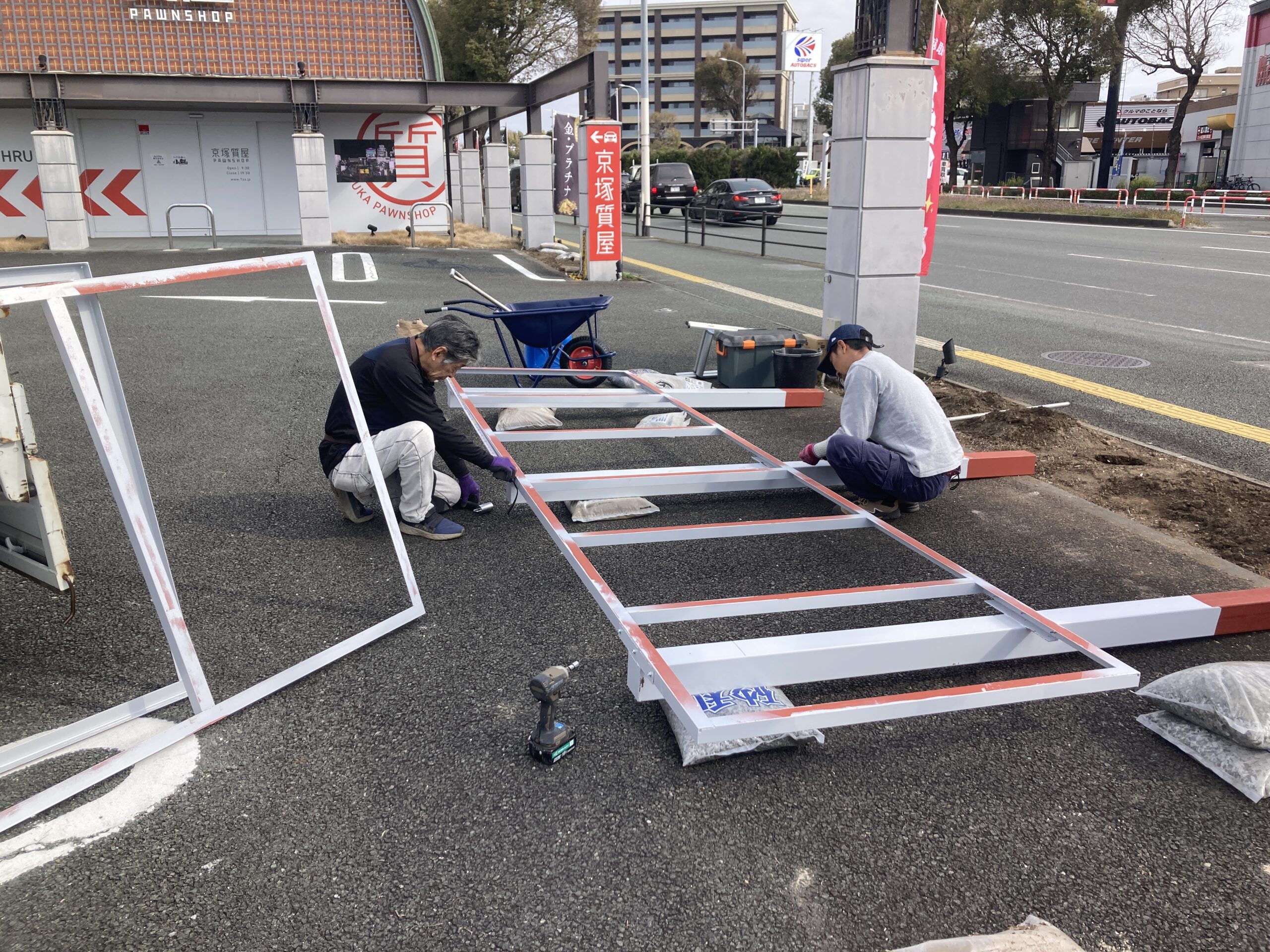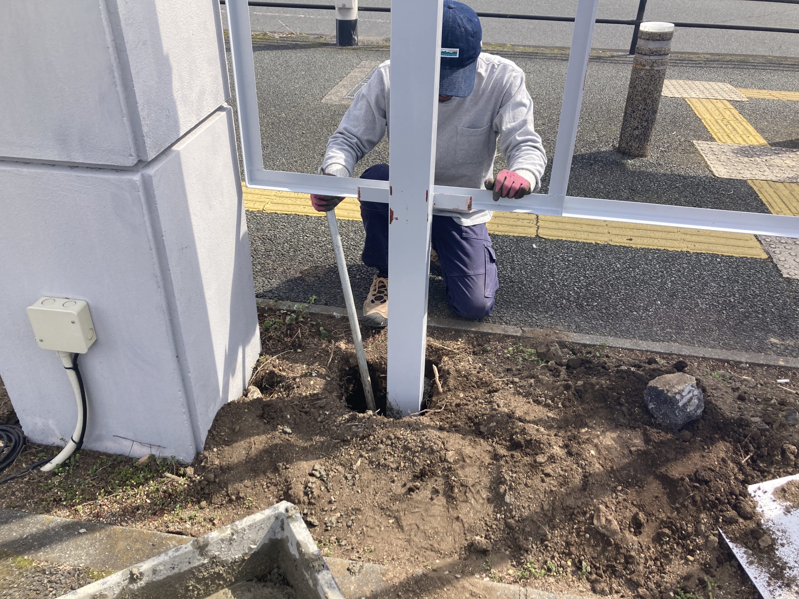 数が多いため、今回は土木工事と看板工事を分けて施工しました。