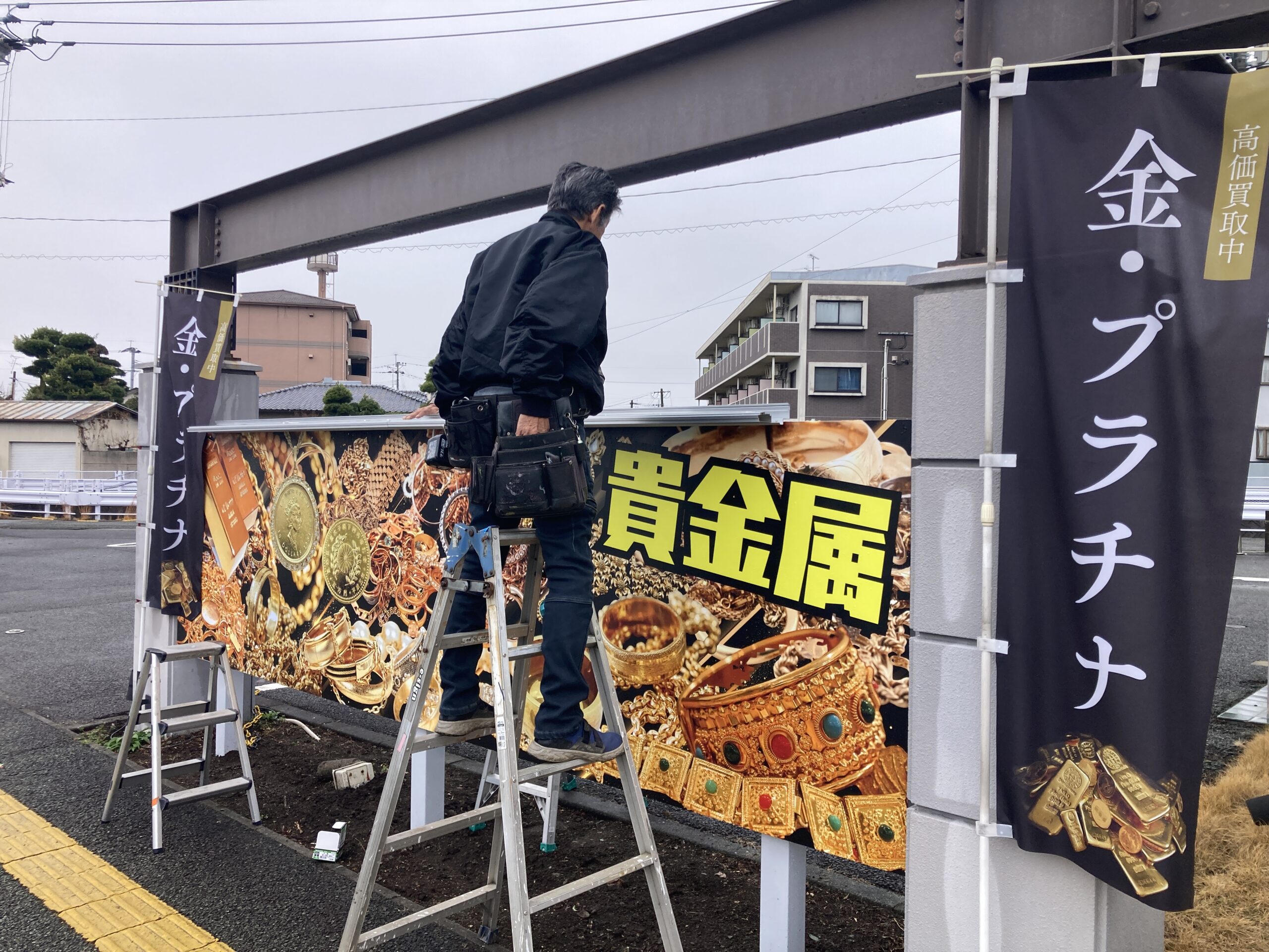 熊本市東区新南部にある京塚質屋さまの建植サインを製作させていただきました!